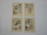 Suite de quatre gravures en couleurs tirées d'un ouvrage,14 x 20 cm,années 50,très bon état.
