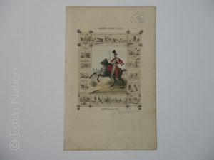 Gravure en couleurs,16 x 25 cm,mi-XIXe siècle,hussards,très bon état.