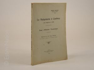 ''La mulquinerie à Cambray,des origines à 1789'',Lille,1932,ouvrage à compte d'auteur,in-8 broché,160 pages,non coupé,ce travail de thèse est consacré à une forme de tissage à domicile,