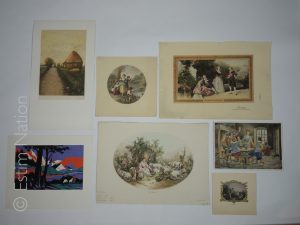 Ensemble de 26 gravures en noir et en couleurs,avec ou sans personnages, en divers format,très bon état.
