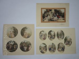 Ensemble de 12 gravures en couleurs,avec ou sans personnages,33 x 50 cm à 40 x 60 cm,très bon état.