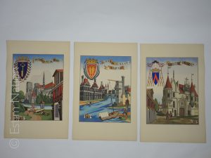 Ensemble de quatre gravures en couleurs au pochoir d'éléments d'architecture de Paris,32 x 50 cm,très bon état.