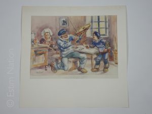 ''Construction navale'',aquarelle originale,signée en queue à gauche et au dos,datée 6 janvier 1947,grand format,29 x 38 cm,très bon état.