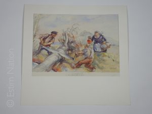 ''Le Godendart'',aquarelle originale,signée en queue à droite et au dos,datée 6 janvier 1947,grand format,29 x 38 cm,très bon état.