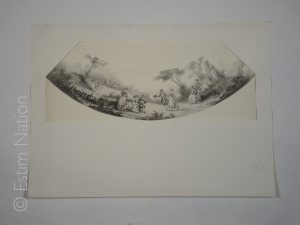 Gravure en noir,21 x 56 cm,en format abat-jour à plat,très bon état.