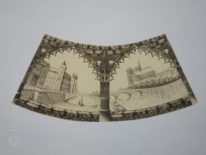 Gravure en noir,26 x 60 cm,en format abat-jour à plat,très bon état.