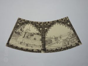 Gravure en noir,26 x 60 cm,en format abat-jour à plat,très bon état.
