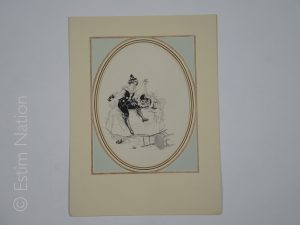 Dessin original au trait ( encre noire) sur le thème de la fête,femme à la coupe de Champagne,format 17 x 22 cm ,très bon état.Mention manuscrite avec signature autographe au dos de Chamoin,datée 20 mars 1912 .