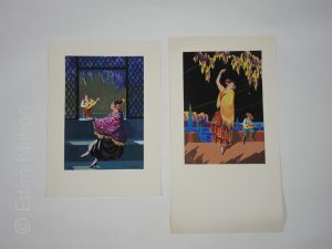 Deux gravures en couleurs au pochoir,22 x 33 cm,très bon état.