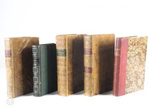 Ensemble de 5 volumes en bon état : annuaire 1819,cours d'agriculture tome 6,dictionnaire historique tome 12,Töpffer nouvelles genevoises,Rostand Cyrano''.