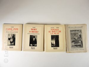 Ensemble des trois volumes des textes de Céline illustrés par Tardi,chez Gallimard,en diverses dates d'édition,grand in-4,reliure souple de l'éditeur,''Voyage au bout de la nuit,mort à crédit,casse-pipe'',en bon état.