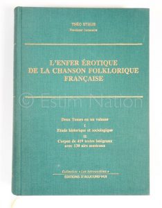 STAUB, Théo L'enfer érotique de la chanson folklorique française - Editions d'Aujourd'hui / Les introuvables - relié toilé vert - Janvier 1981 - 343p. - 15,5 x 21,7 cm - issu d'une thèse de doctorat du 3ème cycle en Art