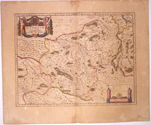Carte XVIIe s.: «Bituricum vulgo Duché de BERRY» (Bourges) par W. Blaeu. (50 x 60,5 cm) Etat B.