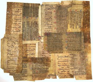 ENLUMINURES du XVe Siècle - 12 Fragments de page calligraphiée et enluminée du XVe s. provenant d'un antiphonaire. (pages de parchemin qui ont servi de renfort de reliure in-8°.), à voir. (défauts)