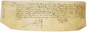 1536. Quittance signée des tabellions pour le Roy en la Ville et Banlieue de CAEN.