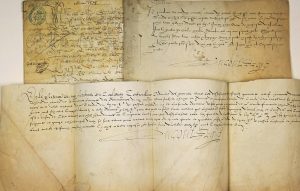 DU COULDRAY; 3 Pièces du XVIe S.Pièce signée Fiérabras Du COULDRAY Contrôleur ordinaire des guerres de 49 Hommes d'armes et 75 Archers étant sous la charge du Prince de Condé. Quittance de 8650 Livres pour le paiement des hommes de guerre à...