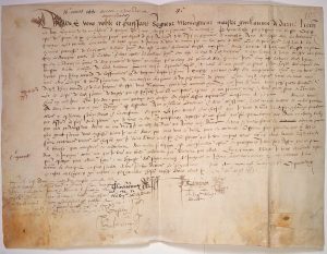 (SARTHE) 1551. LA CHAPELLE D'ALIGNÉ. Grand parchemin (29 x 38) - Devant Notaires de la Baronnie de DURESTAL, Aveu rendu à MAUBROSSAY, le 16 mars 1551 - "Guillaume de DUREIL Licencié en Lois, seigneur de la Méchallière, de Pantigné, des Hays et...