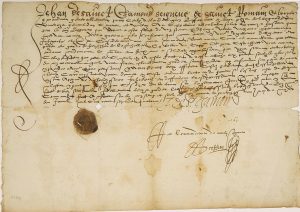 Velay. Nomination du Capitaine à la Garde du Fort et Château de CASSAGNOLES «et pour cet effet ordonnons le nombre de 10 soldats arquebusiers que vous ferez entretenir.»Fait à Nîmes le 14 Janvier 1574. Sceau sous papier aux armes. 1p (25 x 36) Petite consolidation.