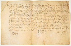 (LANGUEDOC. HÉRAULT. LA GARDE DU CHATEAU DE PÉZENAS EN 1602.) Parchemin (23 x 37)Pièce signée Pierre De GUYSON dit ROUJON Capitaine Commandant pour le service du Roy dans le Château de la ville de PÉZENAS (de sa Griffe), François de BROSSONNET...