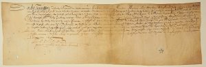 (1615. RÉCEPTION À BORDEAUX POUR LE MARIAGE DU ROI LOUIS XIII.) Parchemin (14 x 47)Lors de la réception du Roi, de la Reine et de la Princesse d'Espagne à l'occasion de son Mariage, Jean DU BERNARD, habitant de Bordeaux a prêté mille livres au...