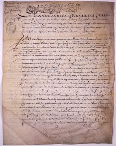 payement de la somme de 300 livres et 2 sols à laquelle il avait été taxé( (pour usurpation de Noblesse) ... pour le Droit de Franc-Fief de son Fief de LUBRET et dépendances, Généralité de Bordeaux et lui faisons mainlevée de la saisie qui a été faite le le 24 juillet 1696 (Saisie générale de tous les fruits, blés, avoines, vendanges, foins, rentes, fiefs et revenus dépendant de la Seigneurie de LUBRET).Parchemin de 4 pages (25 x 32,5). Cachet du Cabinet d'Hozier.
