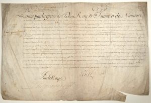 (CALVADOS 1712). AMIRAUTÉ DE TOUQUES. HONFLEUR - Parchemin (34 x 50) signée LOUIS XIV, Roy de France et de Navarre (Secrétaire) contresignée ¨PHÉLYPEAUX. Donné à FONTAINEBLEAU (Château de Fontainebleau 77) le 23 Août 1712.Le Roi, en...