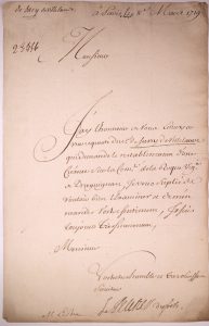 PELETIER DES FORTS» à Paris le 8 Mars 1719 - à M. LE BRU. 1p in-folio. - «J'ai l'honneur de vous envoyer un requête du sieur SASSY DE VILLEMAURE (De Sacy de Villemaure) qui demande le rétablissement d'une créance sur la communauté de la Roque Viguerie de Draguignan. Je vous prie de vouloir bien l'examiner et de m'en donner votre sentiment.»