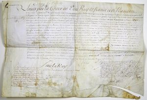 MARNE. 1723. GRENIER À SEL de SÉZANNE (51) Parchemin (50 x 34). Commission à notre Amé le Sieur Charles Nicolas LANGLUMÉ pour faire l'exercice et les fonctions de Président au Grenier à SEL de SÉZANNE - Donné à Versailles le 13 Février...