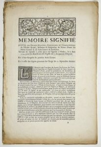 l'Ordre, le 6 juin 1732. Pour les Bénéficiers de l'Église de SAINT JACQUES DE L'HÔPITAL. Et à leur requête du premier août suivant. Et à celle des Agents généraux du Clergé du 12 septembre dernier.» Impr. à PARIS, chez Louis-Denis DELATOUR, Imprimeur de l'Ordre de Saint Lazare et de Jérusalem.1733; 28pp gd in-folio.