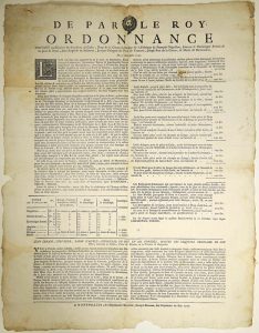 (LANGUEDOC. TARN. AVEYRON. 1746.) Placard (58 x 46). «DE PAR LE ROY. Ordonnance portant confiscation de dix pièces de Cadis, drap de la Caune (LACAUNE Tarn), & Sargue de la Fabrique de François DAGUILLON, Étienne & Dominique EVRARD de...