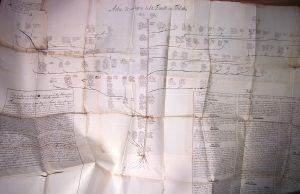 SAVOIE. Arbre généalogique XVIIIe S., de la Famille THIBALLIERS (ou THIBALIER), originaire de Savoie.Cachet du Cabinet d'HOZIER. Manuscrit sur une très grande feuille (150 cm x 100 cm) montrant l'arbre de Ligne de la Famille, avec Copie des...