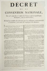 DOUANE. CHEVAUX. 1793. Placard (41 x 26) «Décret de la Convention Nationale, du 26e jour du 1er mois de l'an 2 (17 oct. 1793), relatif au nombre de chevaux que les militaires sont autorisés à conserver, et à ceux des employés des Douanes.»...