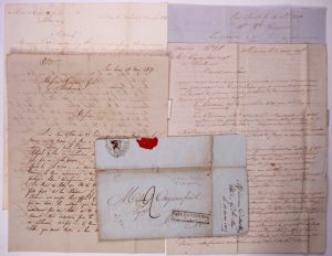 ILE MAURICE. BORDEAUX (33) - 5 Lettres commerciales parties de l'Ile Maurice, de 1834 à 1837, adressées à Messieurs CAYROU Frères, Négociant à Bordeaux. (de Maurice, Port Louis (2), st Denis, ile Bourbon (2)). Marques postales.