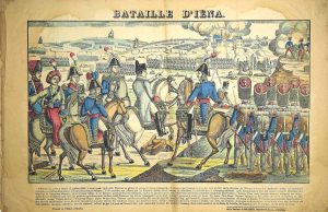IMAGERIES NAPOLÉONIENNES de 1835 - 7 Planches (41 x 62), en couleurs, de la Fabrique de PELLERIN, Imprimeur-libraire à ÉPINAL (Vosges) (quelques défauts et déchirures.): «Napoléon au Camp de Boulogne» + «Bataille d'Iéna» + «Bataille et...