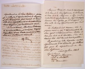 MAYENNE est une de celles qui m'ont le plus flatté par la manière spontanée dont les suffrages se sont portés sur moi, et par tous les témoignages de sympathie... Mais des considérations d'intérêt général ont dû dicter ma décision, et entre les cinq départements qui m'ont ouvert les portes de l'assemblée, il est un que de grands désordres ont affligé déjà, et auquel il faut, autant que possible ne pas faire courir la chance de nouvelles agitations... ont déterminé mon option pour le département de la SEINE INFÉRIEURE..." -