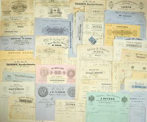 pointes, Quai Napoléon N°1 Rouen 1852 + CHATELIN Frères, Verres à vitres et de couleurs, 22 rue St Etienne Rouen 1852 + MIROUDE Fabrique de cardes perfectionnées, 18 rue Lemire Rouen 1852 + DUMOUCHEL entrepreneur de bâtiments 85 Bld Beauvoisine Rouen 1853 + EVRON ImprimerieLithographique, 13 rue de la Vicomté, en face la Poste, à Rouen 1864 + LECUYER, Peintre Vitrier, 43 rue des Bons-Enfants Rouen 1868 + Melle ARSON, Magasin de Blanc, Toiles et Mousselines, 27 rue des Carmes Rouen 1868 + Dépôt DERONNE, DUVEL Chocolat, biscuit, bougies, 136 rue des Bons Enfants Rouen 1869 + FLEURY Libraire, 23 Place Saint-Ouen Rouen 1869 + VERRIER Frères & BOURGEOIS Vétérinaires 49 rue de l'Hôtel de Ville à Rouen 1869 + LANCESTRE-BOULANGER épuration d'huile à brûler, 3 rue de Racine Rouen 1870 + MmeASTER Rubans Passementerie Rue Guillaume-le-Conquérant 187? + HUCHON «Maison du Bon Pasteur»Coiffures de Bal et de Mariées, spécialité de roses, Fournisseur breveté de S.M. l'Impératrice. 74 rue de l'Impératrice (en face la Poste) Rouen 1870 + GASTEBIS Tonnelier, 26 rue Saint Romain Rouen 1870 + «A LA COURONNE D'OR» AMAIL Joaillier, Bijoutier, Orfèvre, 19 Place de la Cathédrale Rouen 1871 + LEQUESNE Horlogerie, 115 Rue des Carmes Rouen 1871 + ENGI Pâtissier-Glacier 80 rue Beauvoisine Rouen 1871 +FLAMAND Fabrique de chapeaux de pailles, 62 rue St Nicolas Rouen 1871 + CAGNION Porcelaines, Faïences, cristaux, 11 rue du Vieux Pamais Rouen 1871 + SOURY Draperie, Nouveautés 64 rue St Nicolas Rouen 1871 +LASCOMBE & Cie eaux minérales naturelles 24 rue de l'impératrice Rouen 1871 + DUBOIS fabrique de Chapeaux, 55 rue des Bonnetiers Rouen 1871 + COURTOIS charbons de bois et de terre, 46 Bld BeauvoisineRouen 1871 + «V. THUILLIER & BONNEFOND, teintures, Impression, Fournisseurs brevetés de sa Majesté l'Impératrice, 24 & 26 rue des Juifs Rouen 1870 + VERCNOCKE Chapellerie, 109 rue des Carmes Rouen 1872 +TASSERIE, Bourrelier-Grainetier, 166 Place Henri IV, Rouen 1872 + CRESSENT Loueur de voitures, landaus, berlines, coupés, 5 rue de Socrate Rouen 1872 + «AU GLAND D'OR» SPORCK Ainé, fabrique de Passementerie, 12 Place de la Cathédrale Rouen 1873 + «AU GROS GANT» FUHR 51 rue grand-Pont à Rouen 1873 + «A L'AUMUSSE» DENAIN Md Pelletier-Fourreur 31 rue de la Grosse Horloge Rouen 1873 + MARY & DELAMARRE, Bois du Nord & Bois Français, Scierie mécanique, rue Armand Carrel Rouen 1873 + LE DUE Loueur de voitures, 5 rue Duguay-Trouin Rouen 1873 + HERPIN Libraire du Lycée, 20 rue de l'Hôtel de Ville + DESPREZ Ainé Boucherie, 16 rue de la Savonnerie Rouen 1873 + SÉDILLE Fabrique de Chaussures, 6 rue St Lo Rouen 1873 + MARTIN fabrique de vermicelle 20 rue St Romain Rouen 1873 + DELIEZ Magasin de Fayence, Verrerie, 15 rue des JuifsRouen 1873 + FRERET Magasin de pommes de terre en gros, 9 Place du Vieux marché Rouen 1873 + MaisonD'HÉRAN Confiseur, 21 rue des Carmes à Rouen 1873 + Maison de PAËP teinture fine et Etoffes de luxe, 18 rueSocrate, Rouen 1873 + Maison COUDY. RADDEZ Succ. Fabrique de papiers peints, paravents, 93 rue des Carmes Rouen 1873 + «A LA GUIRLANDE COURONNÉE» CHAUFFROY Fabricand-passementier 28 rue Saint RomainRouen 1875, etc...L'ensemble: