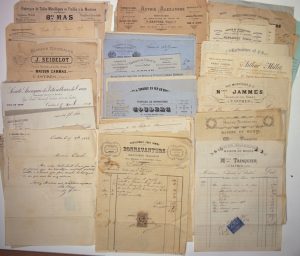 TARN. CASTRES . 97 Factures et lettres commerciales adressées à M. ou Mme CANAL Grand-Rue à Castres; de 1864 à 1891.Nombreux entête imprimés de Commerçants de Castres.