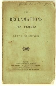 (PLAQUETTE FÉMINISTE) - «LES RÉCLAMATIONS DES FEMMES.» - Ouvrage de M. le Comte A. de GASPARIN, avec envoi autographe de la Comtesse de Gasparin - Impr. à PARIS, Michel LÉVY, Éditeur. LibrairieNouvelle. 1872; 76 pages in-8°.