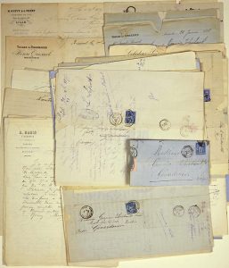 VOSGES. 85 Lettres et Factures adressées à «GARNIER THIEBAULT Frères», Manufacturier, Fabricant de Toiles à GÉRARDMER. De 1877 à 1897 - Oblitérations et timbres.