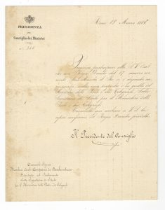 «[...] Sua Maestà il Re si è degnato nominarla, sulla mia proposta [...] Sotto Segretario di Stato per il Ministero delle Poste e dei Telegrafi [...]».