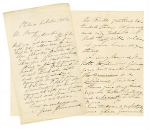 GREENWOOD Grace [pseudonimo di Sara Jane Clarke Lippincott], 2 lettere autografe firmate inviate al Sig. Powers. Datate 1855-1857.