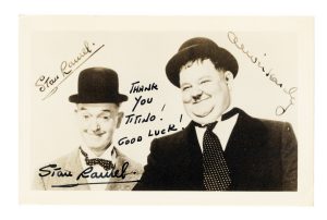 E' autografa la dedica «Thank / you / Titino! / Good luck / Stan Laurel».