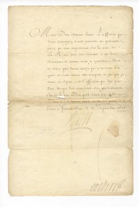 Lettera di mano del segretario del Gabinetto del re, Toussaint Rose.