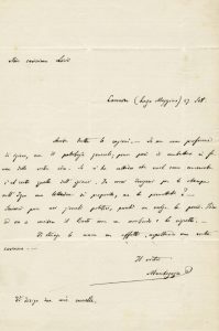 MANTEGAZZA Paolo, Lettera autografa firmata inviata a 'Mio carissimo Livi'. Datata 27 settembre s.a.