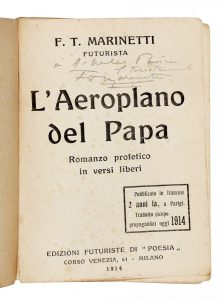 MARINETTI Filippo Tommaso, Dedica autografa su libro L'aeroplano del Papa. Milano, Edizioni Futuriste di Poesia 1914.