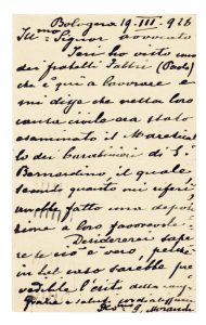 MORANDI Giorgio, Cartolina postale viaggiata, autografa firmata, inviata all'avvocato Guido Ballardini. Datata 19 marzo 1916.