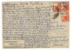 MUSSINO Attilio, Cartolina postale viaggiata, autografa firmata, inviata a Felice Mussino. Datata 3 gennaio 1949