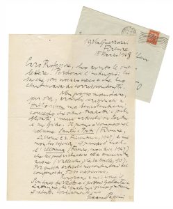 PAPINI Giovanni, Lettera autografa firmata inviata a Giorgio Pillon. Datata 15 marzo 1948.