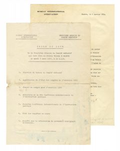 Insieme ad altro foglio che contiene un ordine del giorno di un incontro del "Bureau International / d'education".