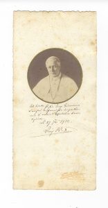 SARTO Giuseppe Melchiorre (Papa Pio X), Testo autografo e firma su cartoncino originale sul quale è applicato un ritratto del Pontefice. Datato 27 settembre 1912